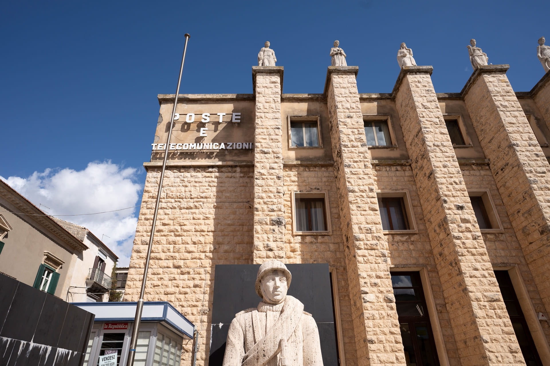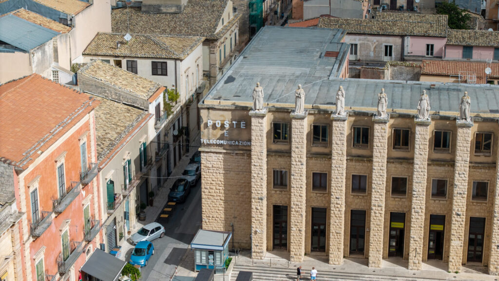 The Ragusa Post Office Palace, located in Piazza Matteotti, is one of the most significant examples of rationalist architecture in the city’s urban context. Built in the 1930s during the Fascist period, it was designed to meet the functional and representative needs of the new national administrative structure. Its façade is distinguished by its sober and geometric lines, devoid of superfluous decorations, in perfect Rationalist style, with compact volumes, rigorous symmetries and a balanced use of materials. The interiors, spacious and well-lit, still retain elegant marble cladding, original flooring and functional yet careful architectural details. The building represents a milestone in Ragusa’s urban modernisation and continues to house the headquarters of the Italian Post Office, remaining a landmark for 20th century public architecture and the historical memory of the contemporary city.